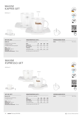 Kaffee-Set UVP in € per Stück, zzgl. MwSt. Außen 1 1c – 5c-Druck 40 x 25 mm